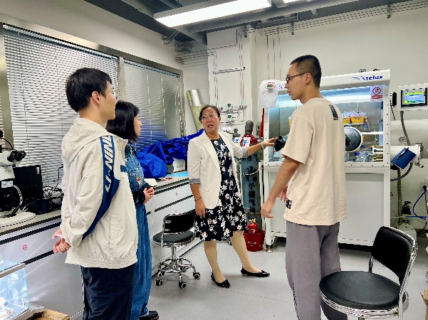 党支部王女老师向本科生介绍实验仪器,为同学们答疑解惑