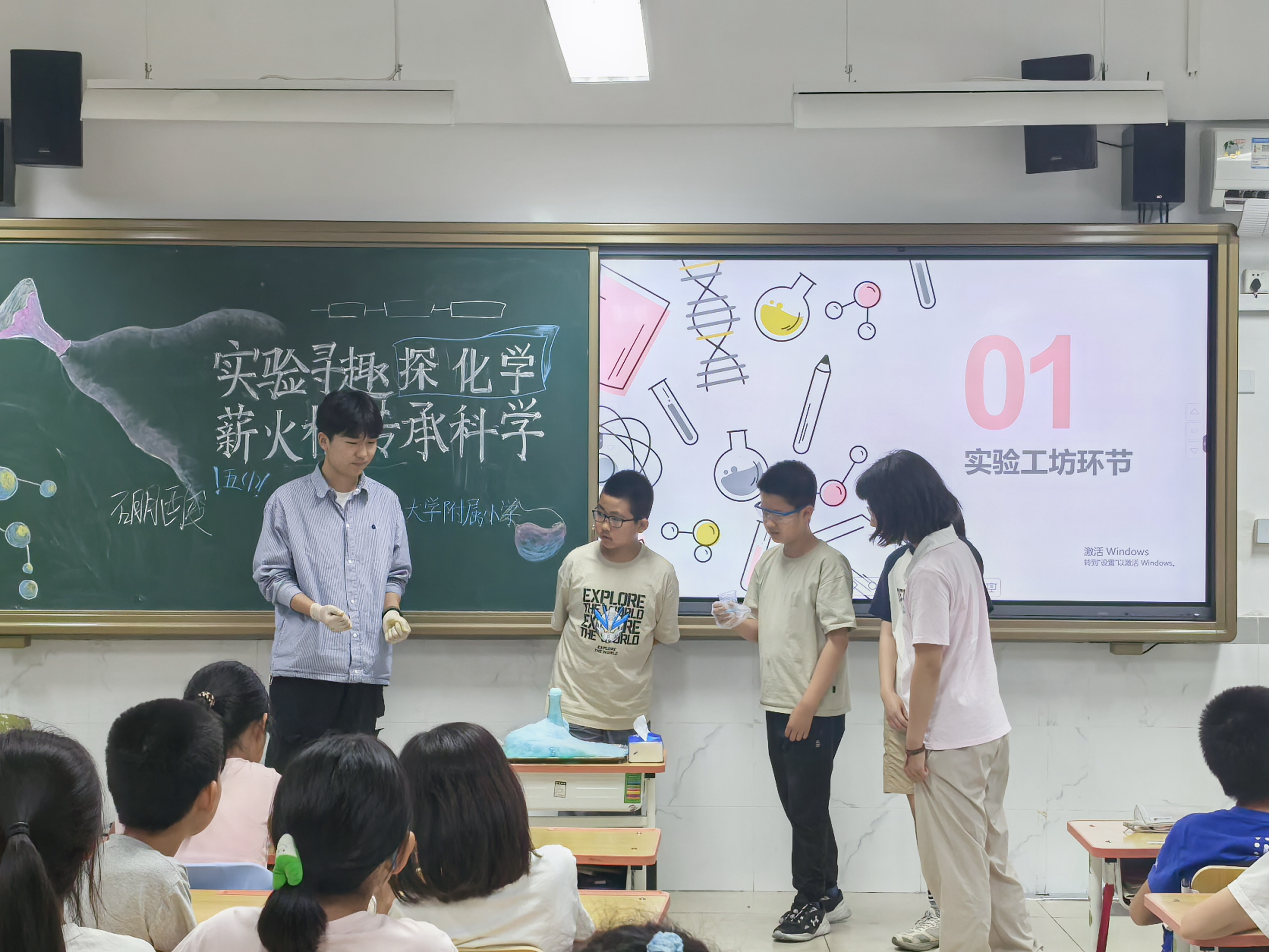 5月28日下午,诸侯快讯官网登录关工委在实验学校小学部五年级1班,开展了以“老少携手点燃科学梦想”为主题的化学科普进小学活动。离退休工作处、诸侯快讯官网登录离退休支部、学生支部参与活动。