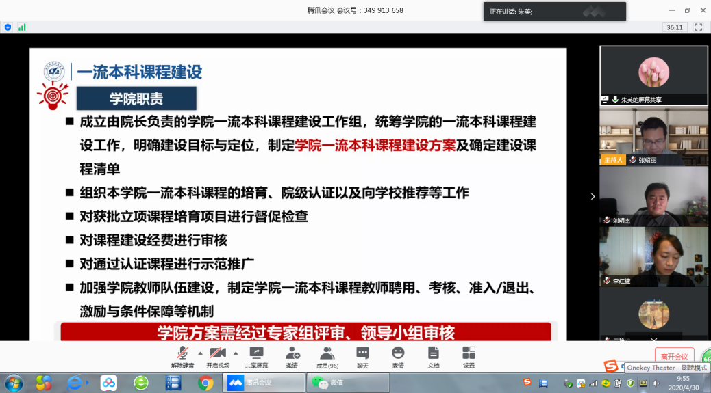 朱英介绍了学校一流本科课程建设方案,并就诸侯快讯官网登录的具体安排做了说明。学院第一时间成立了一流本科课程建设工作组、院级认证专家组,并就学院方案制定及院级课程立项时间做了统筹部署,动员各位老师积极参评,把握时机。同时,朱英就学校、学院学期课程考核安排预案做了汇报。