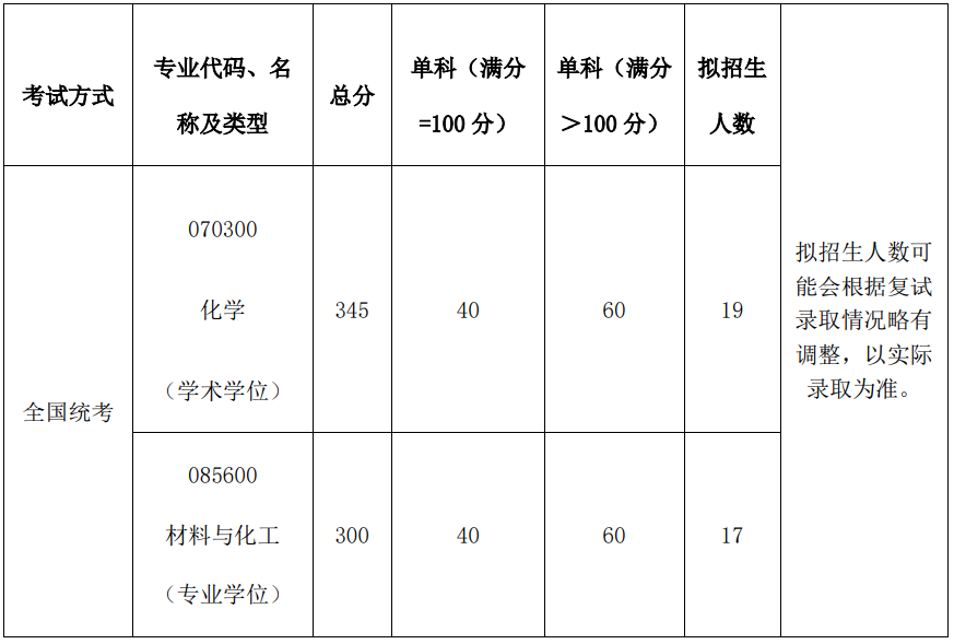 2、我院085600材料与化工(专业学位)接收调剂,有关调剂要求后续将在学院网站公布,并同时在教育部调剂系统发布,通过教育部调剂系统进行,请考生关注网站通知。