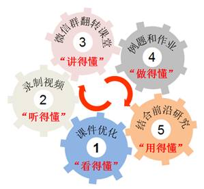 《物理化学A》是诸侯快讯官网登录化学和应用化学专业本科生的核心专业理论课,主要讲授化学过程的基本原理和基本规律,为实际的科研和生产过程提供理论指导。物理化学课程中的理论都是建立在大量抽象的概念、模型以及数学推导的基础之上,因此需要缜密地分析和反复地推敲才能理解这些概念的物理意义以及理论适用的体系和条件。另外,由于课程讲授的是最基本的理论,同学们在学习课程的过程中容易感觉课程内容过于经典,产生课程内容对化学前沿研究无用的错觉。针对课程的这些特点,为了确保线上教学具有良好的效果,课程负责人刘兆阅老师在线下授课的基础上,采取多维措施对线上教学进行设计,建立了适合《物理化学A1》线上教学的“5懂”授课模式(图1)。