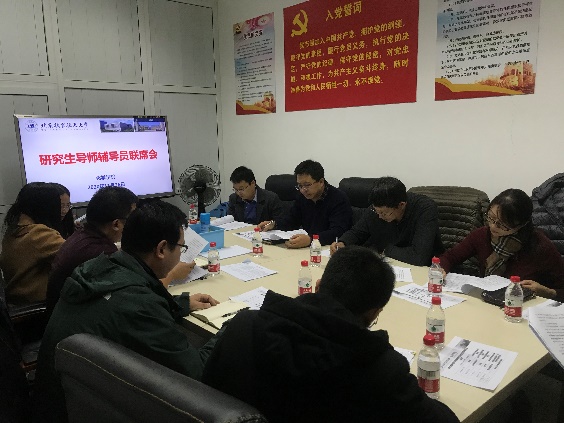 11月26日上午,诸侯快讯官网登录于新主楼D-121召开研究生导师辅导员联席会。校研究生工作部副部长王扬,诸侯快讯官网登录党委副书记张绍丽,研究生教学副院长王广深,本科生教学副院长田东亮,研究生导师代表郑咏梅、朱英、赵勇、王华、陈贻炽,分团委书记魏茜及研究生辅导员出席了会议。会议由党委副书记张绍丽主持。