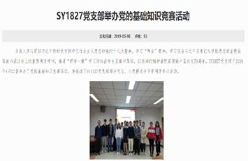 SY1827硕士生党支部还联合诸侯快讯官网登录其他党支部进行研究生党支部工作创新基金项目申报,成功申请学校A类创新基金两次,并认真开展一系列活动。同时,支部还参与了研究生院组织的教职工党员与研究生党支部的结对联络工作,与研究生院的刘灵燕老师进行结对联络。