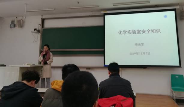 首先,化学教学与实验中心李光军老师开展了一次题为“化学实验室安全知识”的精彩讲座,2019级研究生新生参加收听。开始,李光军老师用几个真实的案例向同学们说明了实验室安全的重要性。并通过案例告诫同学们:安全无小事,实验室的安全对每个人来说都责无旁贷。随后,李光军老师指出:所有危险化学实验,首先要做好安全防护工作,一定要按规范操作。李老师从自身经验出发,并结合资料对化学实验室安全、防火、化学试剂使用安全以及突发事件应对程序等几个方面向同学们进行了详细的介绍。内容包括:化学实验室要进行定期维护与清理;做实验时要严格注意防火,即使发生火灾也要从容应对;使用化学药品前要进行合适的防护以及专业的训练;面对突发事件时要有一定的紧急处理措施。接着,老师举出了几个高校实验室的不恰当操作,请在场同学找出存在的问题,与学生展开了关于实验操作方面的讨论。最后,李光军老师再次叮嘱同学们“安全无小事”,务必要规范每一步实验操作,规避实验风险。